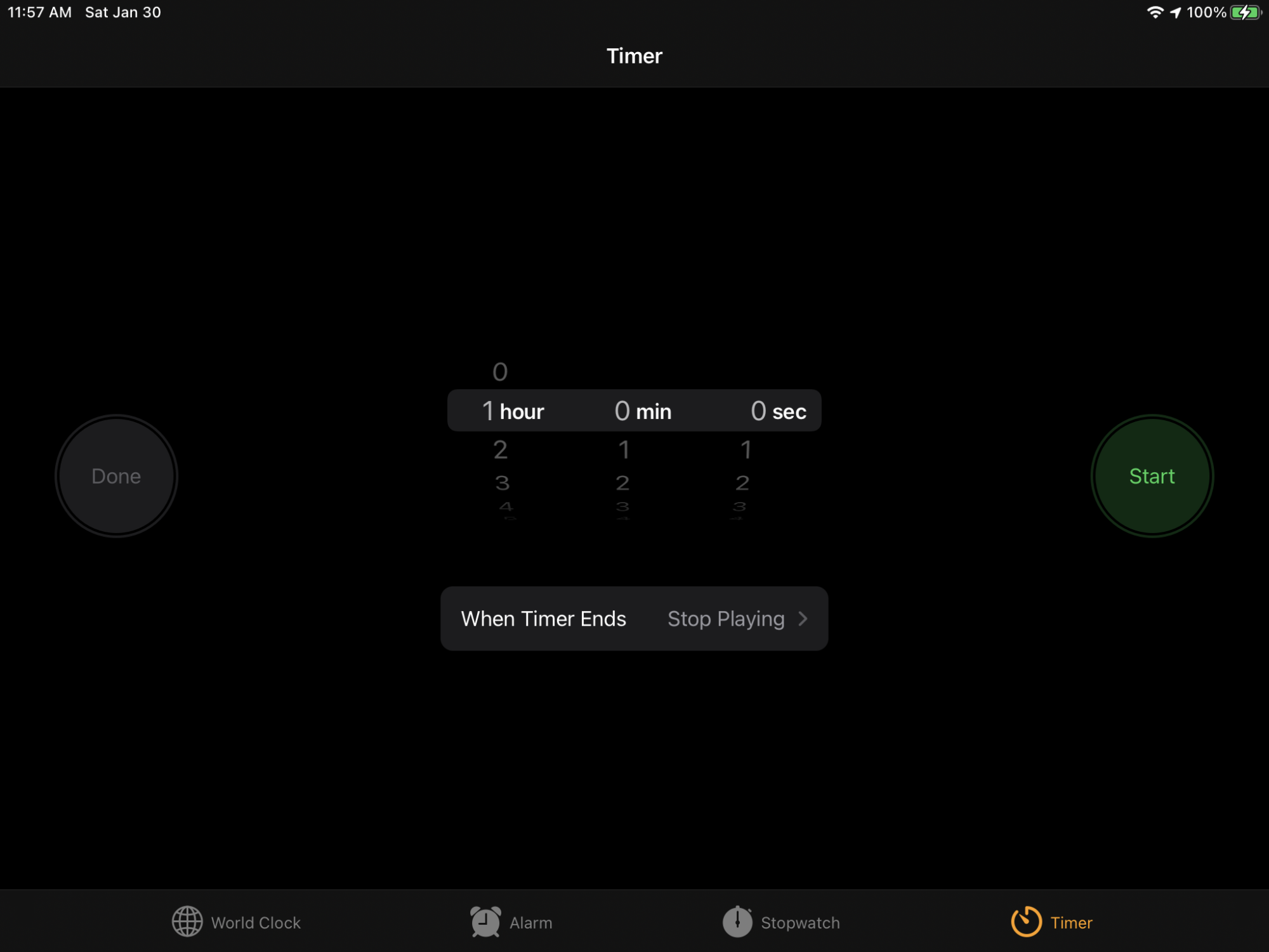 Just open up the Clock app and head over to the “Timer” page. Once you’re there, set the timer on that page to your desired length — one hour is usually all I need, but you can tweak hours, minutes, and seconds to your liking.