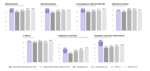 K2 Think V2 targets reasoning benchmarks rather than purely knowledge benchmarks. On AIME 2025 it reaches pass at 1 of 90.42. On HMMT 2025 it scores 84.79. On GPQA Diamond, a difficult graduate level science benchmark, it reaches 72.98. On SciCode it records 33.00, and on Humanity’s Last Exam it reaches 9.5 under the benchmark settings.