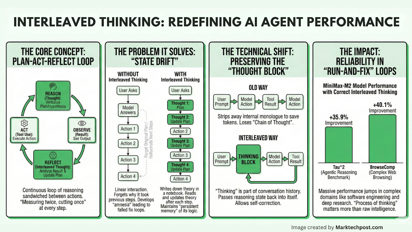 Interleaved Thinking changes the game by creating a dynamic Plan -> Act-> Reflect loop.